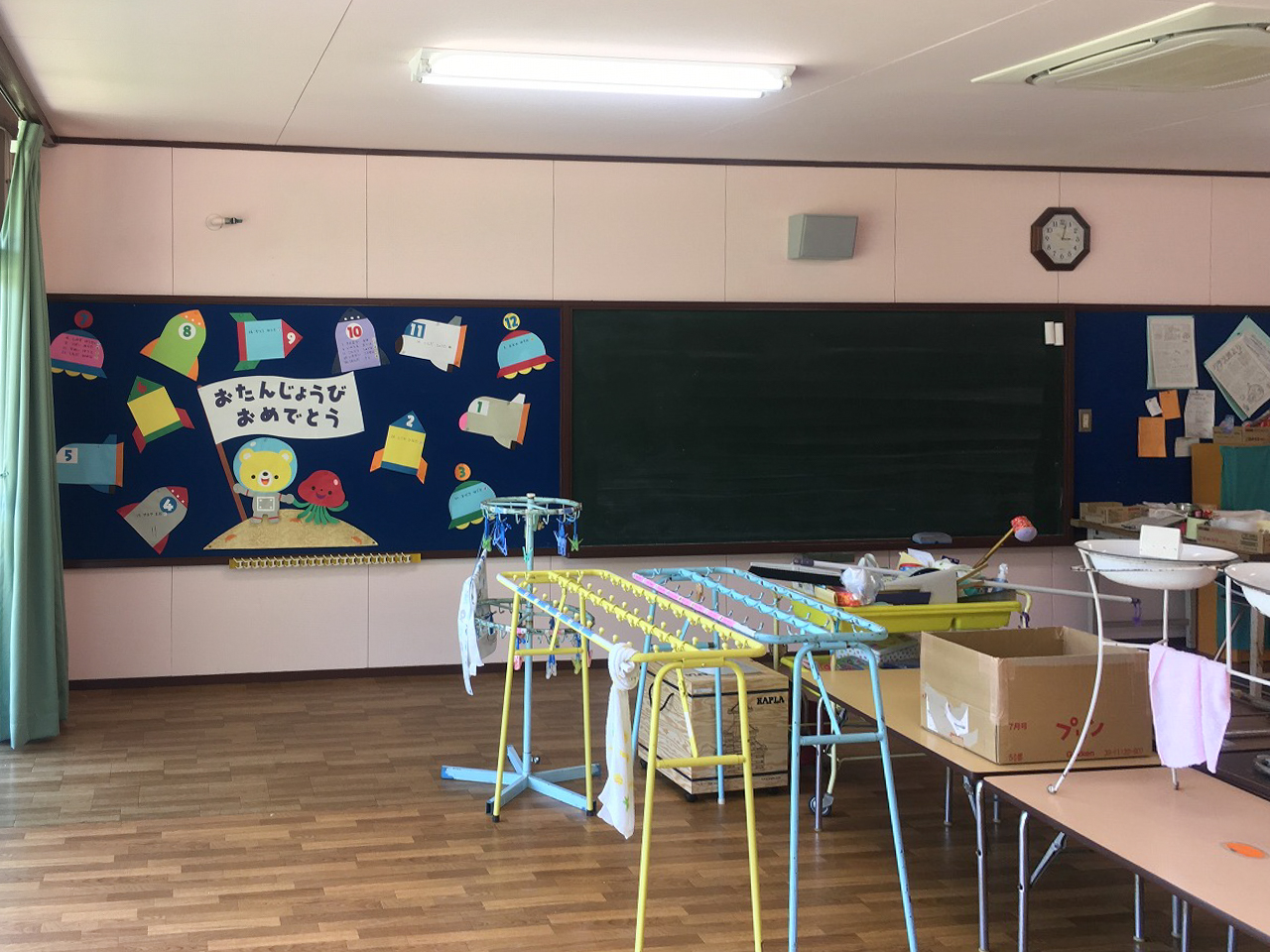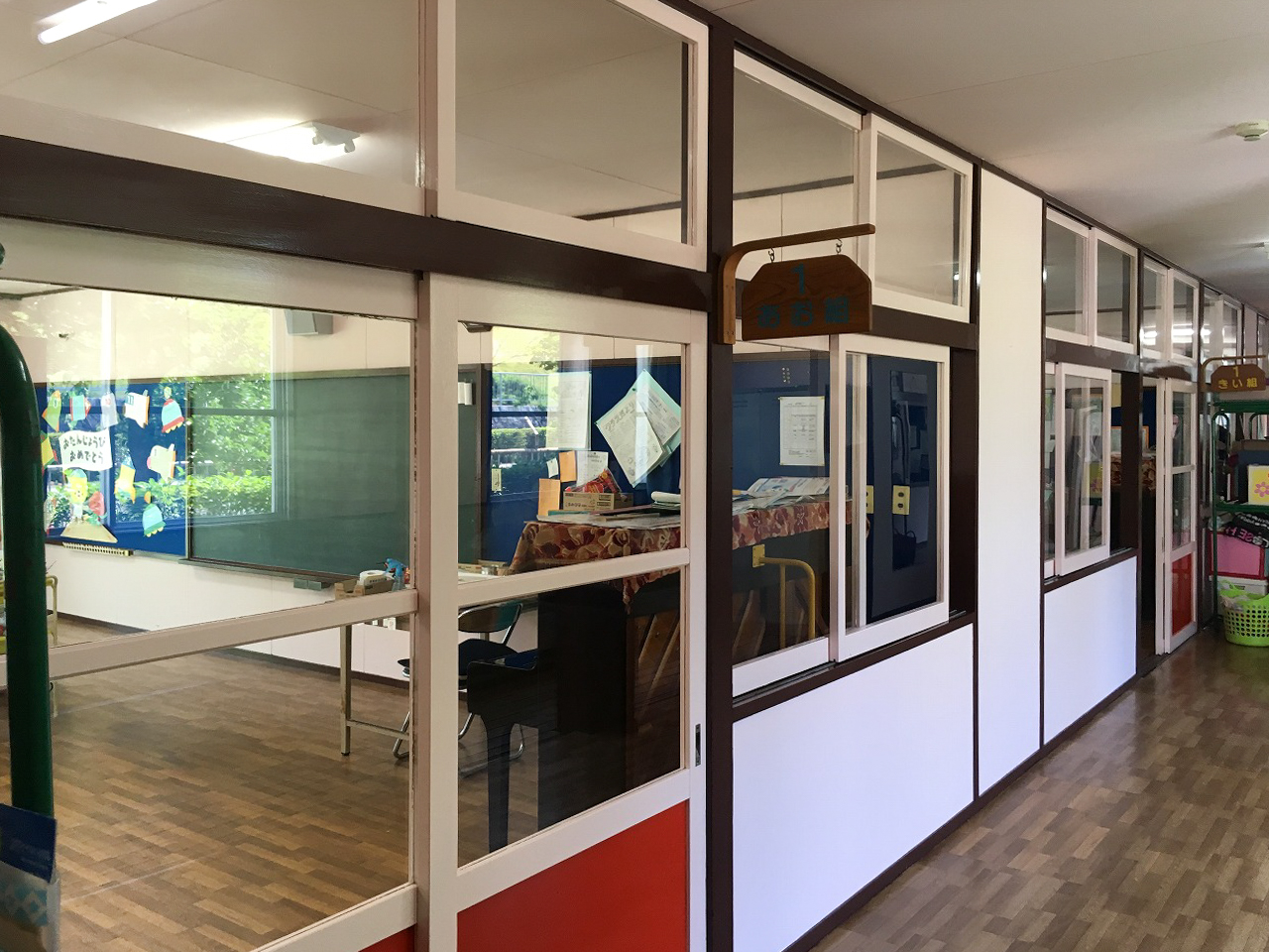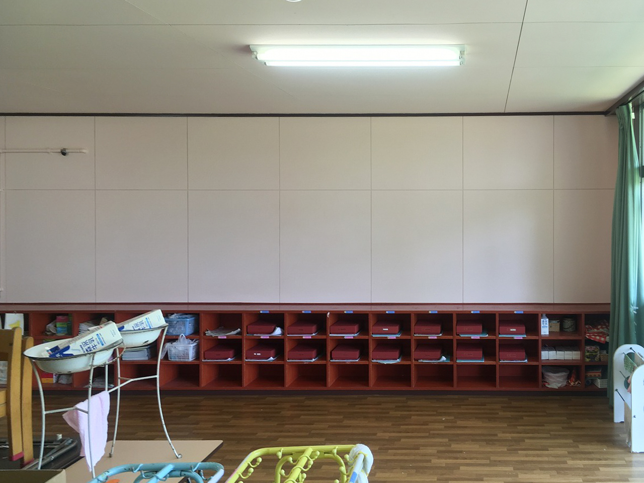 保育園の教室、廊下の天井、壁、建具の全面塗り替えをしました。