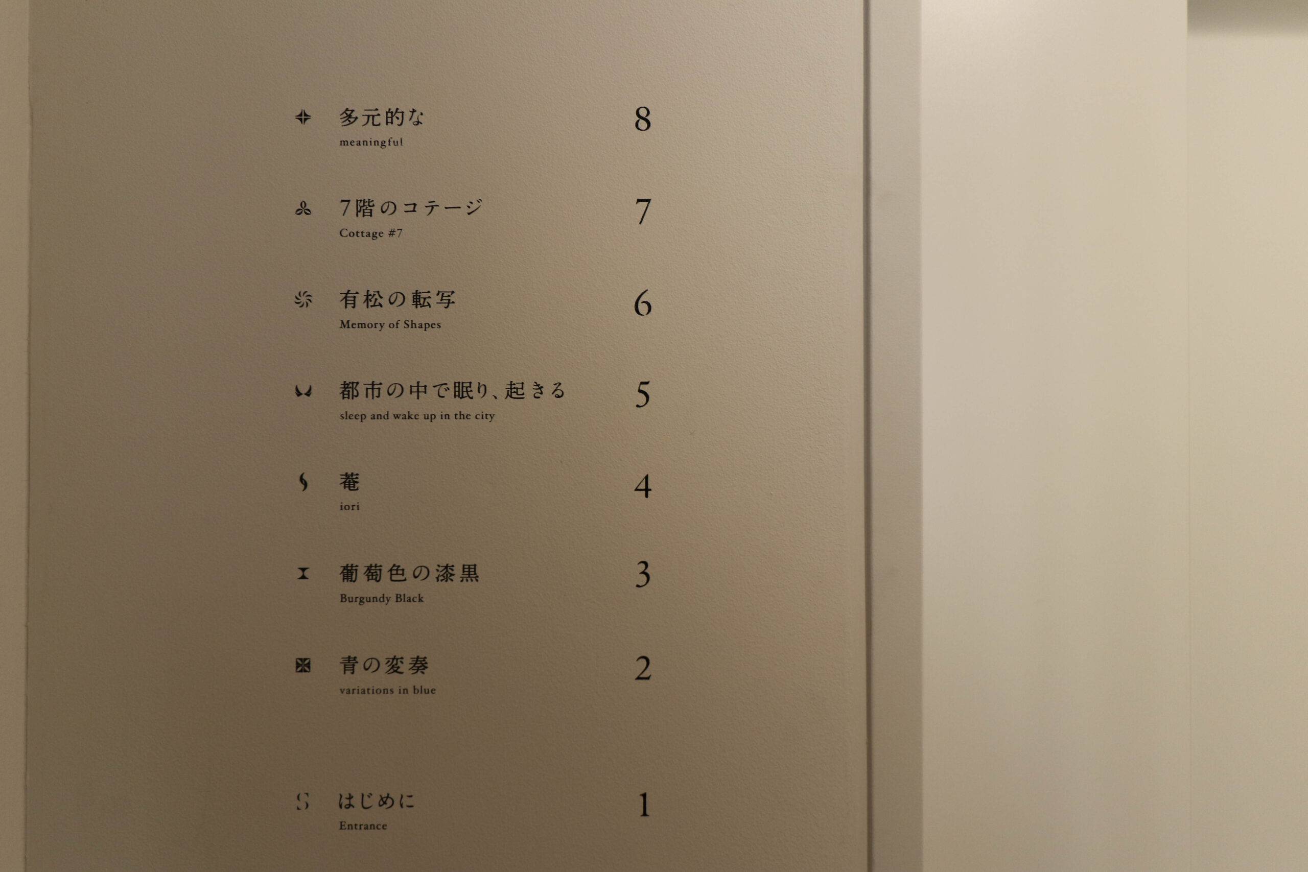 EVの横の階数指示の標識は本の目次のようなデザインです。