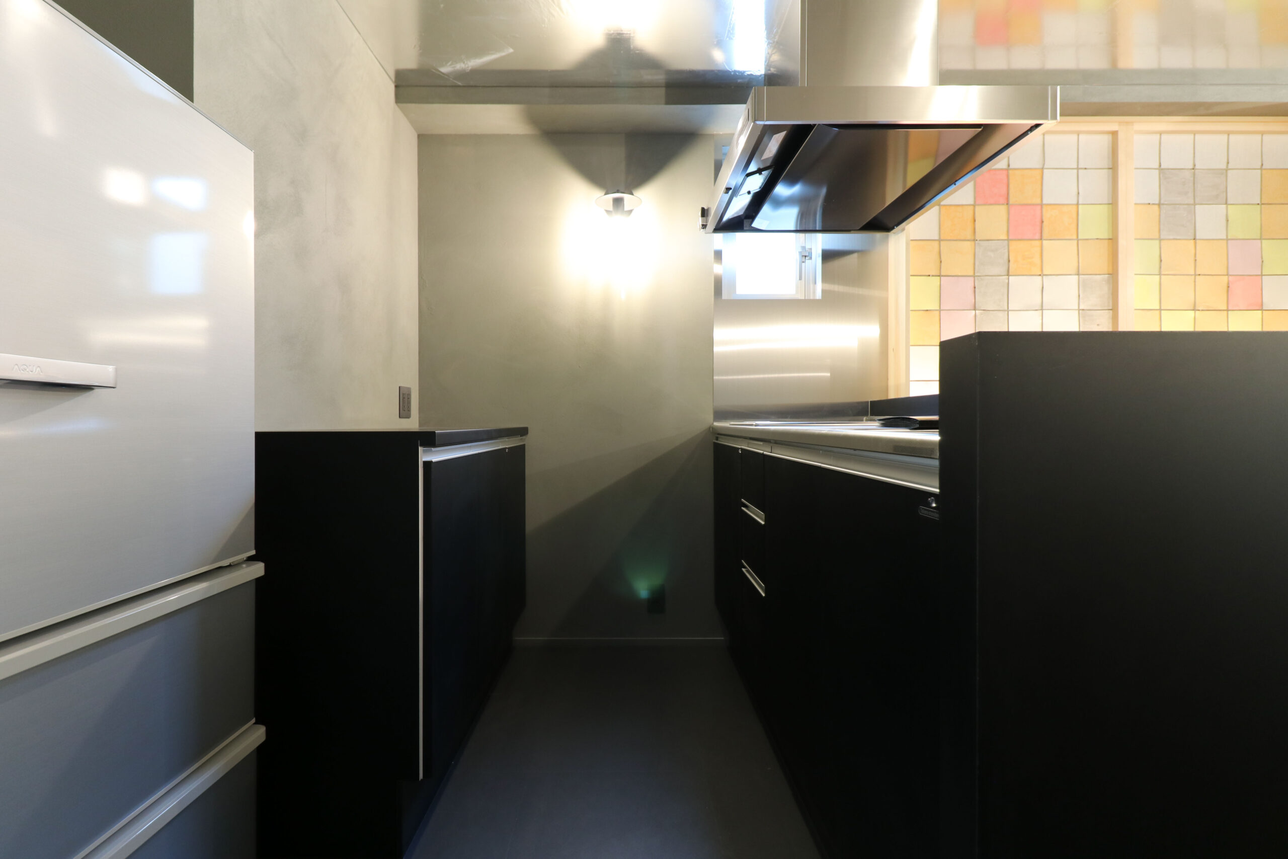 うっすらと反射し、空間が広く見える面白い仕掛けとなっています。