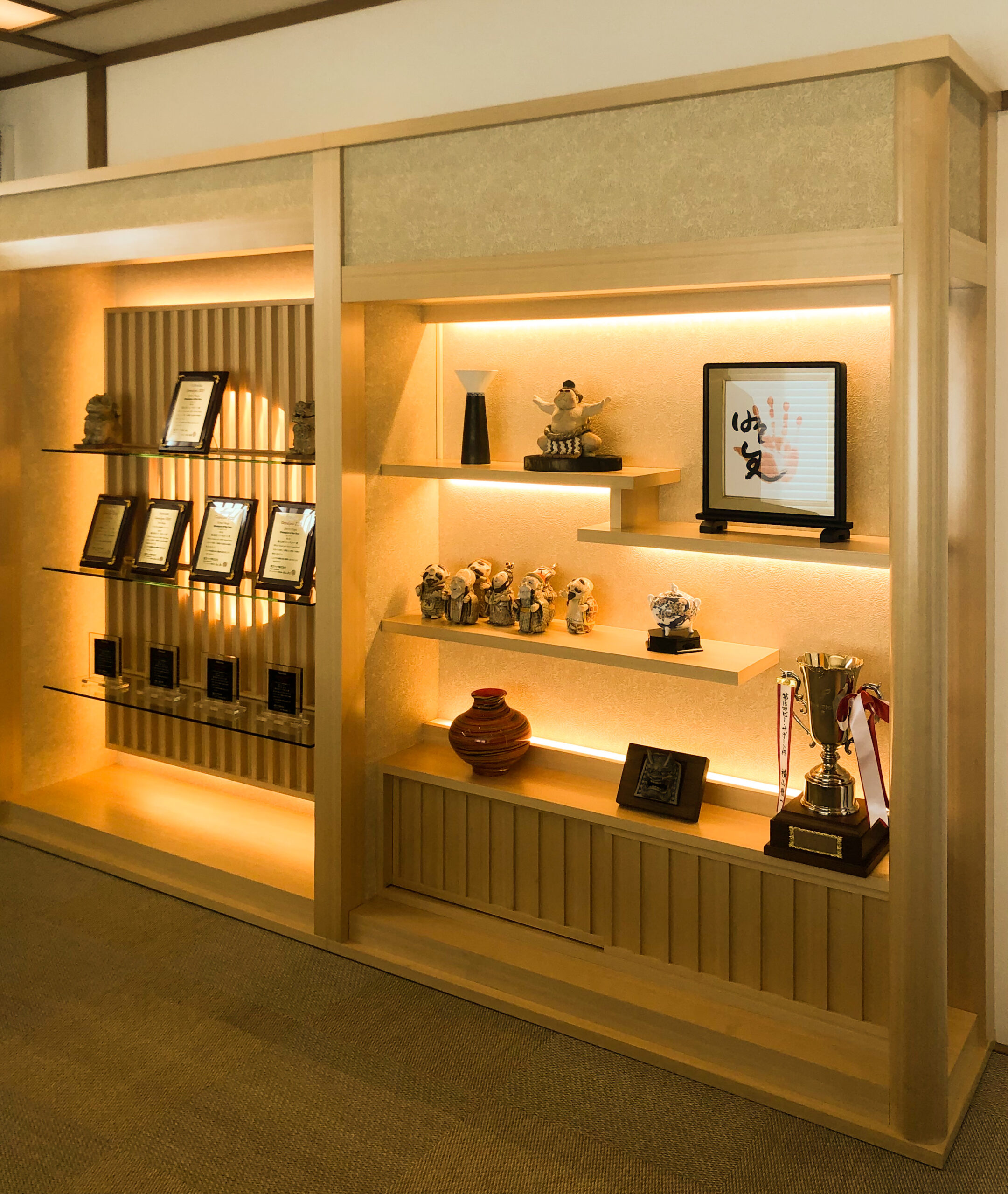 和洋折衷かつ応接室の雰囲気に合う棚とのご要望でした。
